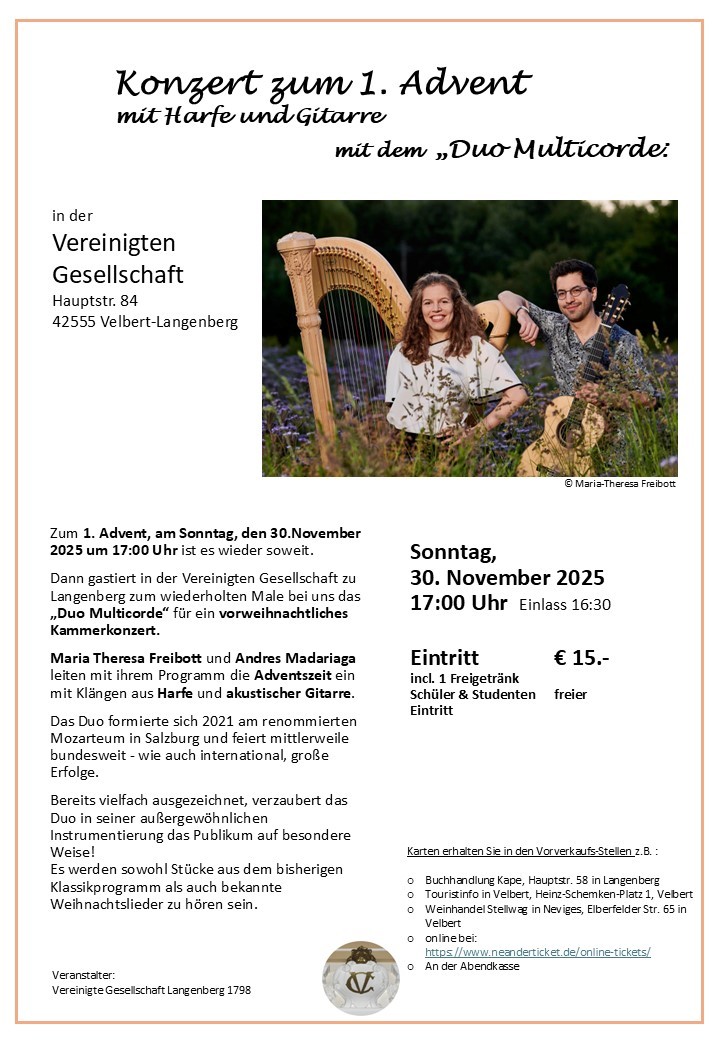 Klassisches Konzert zur Adventszeit mit Harfe und Gitarre